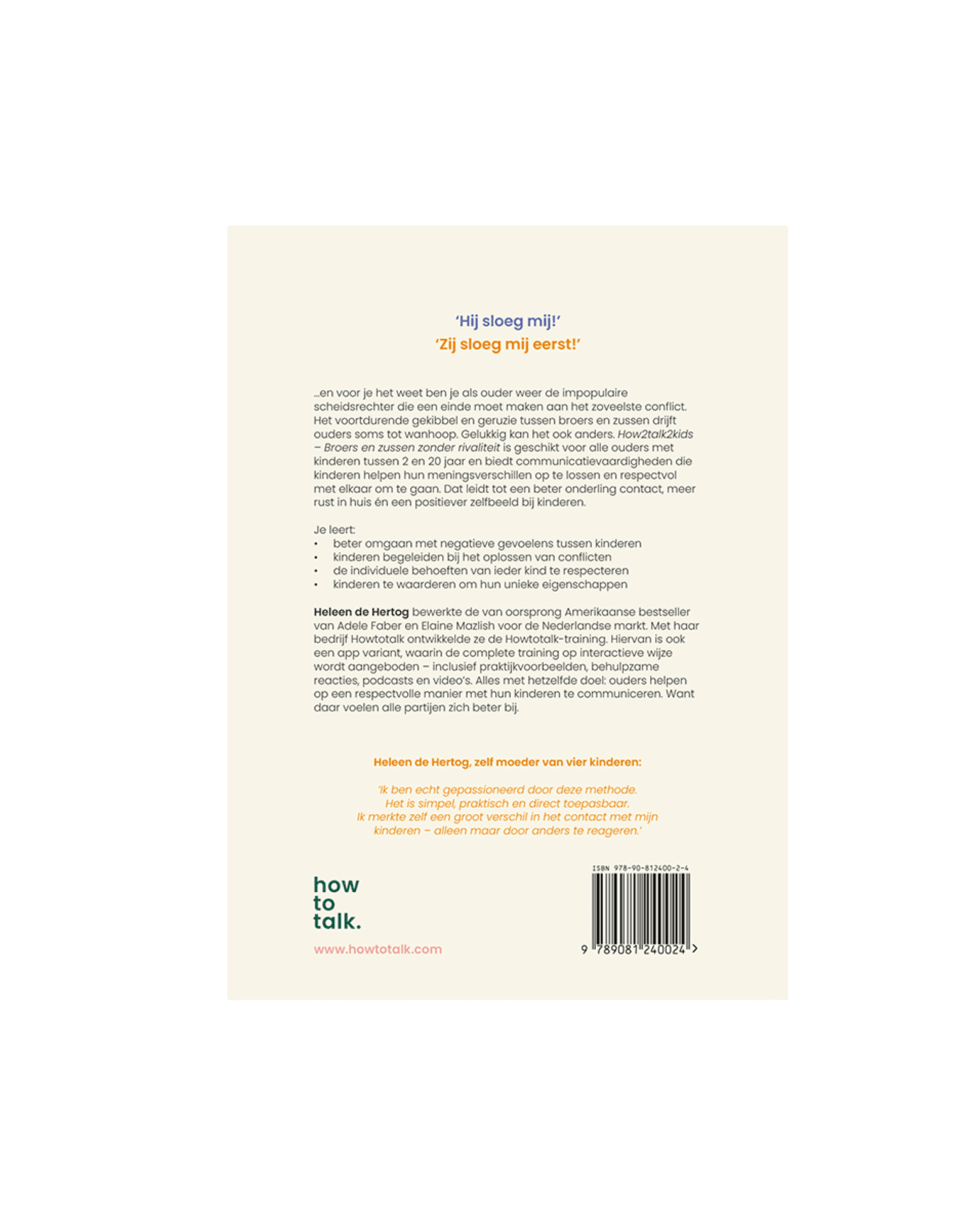 …en voor je het weet ben je als ouder weer de impopulaire scheidsrechter die een eind moet maken aan het zoveelste conflict. Het voortdurende gekibbel en geruzie tussen broers en zussen drijft ouders soms tot wanhoop. In How2talk2kids – Broers en zussen zonder rivaliteit vind je concrete en direct toepasbare vaardigheden om kinderen te coachen bij hun onderlinge conflicten.