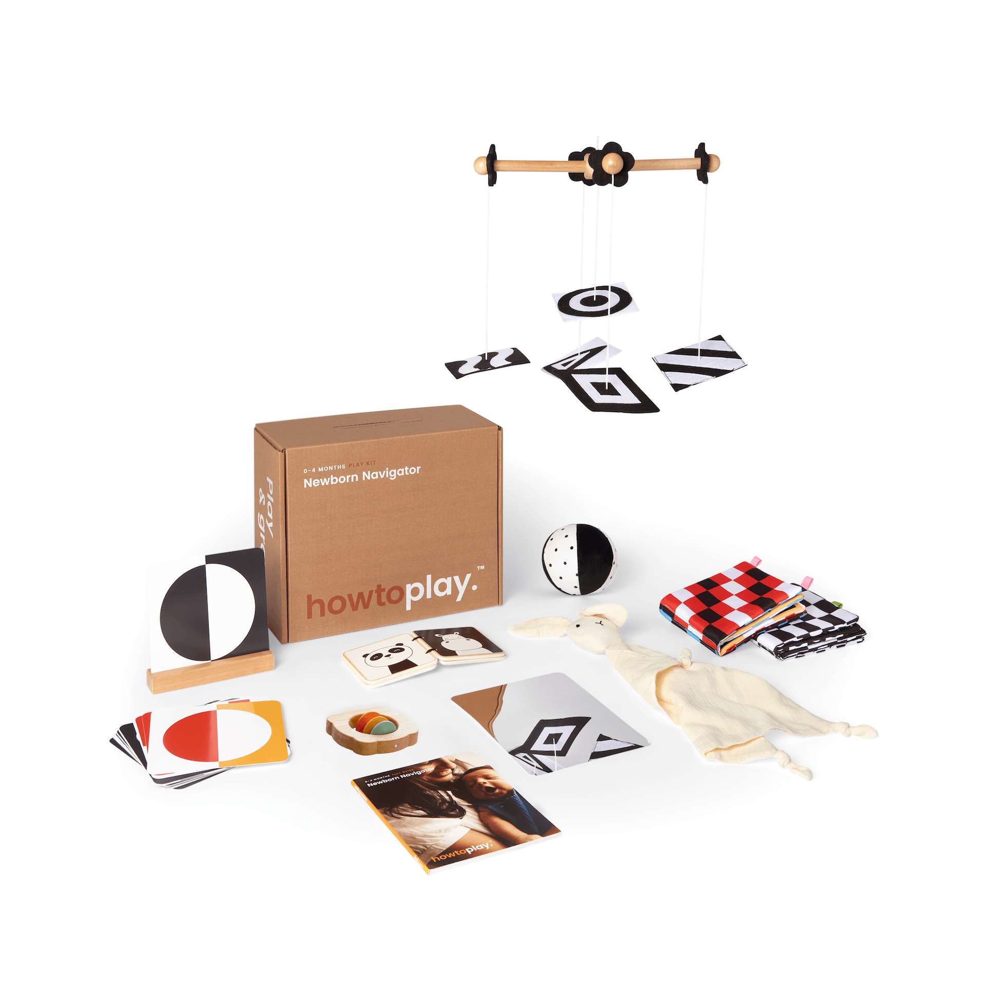 In deze vroege levensfase van je baby, waarin elke dag een nieuwe ontdekking is, hebben we de Newborn Navigator Play Box samengesteld die de zintuigen prikkelt en de eerste ontwikkelingsmijlpalen ondersteunt.